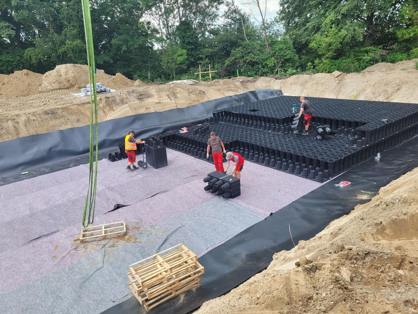 Herstellen eines Regenwasserversickerungssystem (Volumen 235 m³)